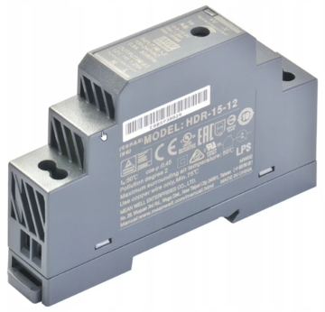 HDR-15-12 - Блок питания AC-DC, 15Вт, вход 85...264 В AC 47...63Гц/120...370В DC, выход 12В/1.25А, изоляция 3000В AC, в кожухе на DIN-рейку, 17.5х90х54.5мм, -30...+70°С