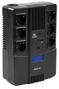 Характеристики: Line-interactive; Мощность: 800 ВА / 480 Вт; АКБ: встроенная 9 Ач; Выходные разъёмы: Schuko - 6 шт (3 - с питанием от АКБ, 3 - без); Порты для зарядки мобильных устройств: USB type A (5 В, 1 А); Корпус для настольной / настенной установки, LCD-дисплей; Стабилизация выходного напряжения, дистанционный мониторинг через порт USB; Расширенная гарантия