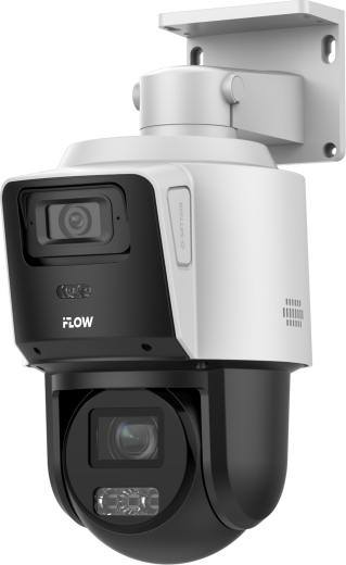 4Мп уличная поворотная PTZ IP-камера i-Flow с технологией ComboVu Два видеомодуля: охват всей сцены и детализация. Фиксированный модуль:
