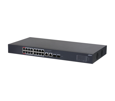 Порты: 16 RJ45 10/100/1000Мбит/с (PoE/PoE+/Hi-PoE), 2 RJ45 10/100/1000Мбит/с (uplink), 2 SFP 1000Мбит/с (uplink); мощность PoE: порты 1~2 до 90Вт, порты 3~16 до 30Вт, суммарно до 190Вт; PoE watchdog, передача до 250м; питание: 100~240В(AC)