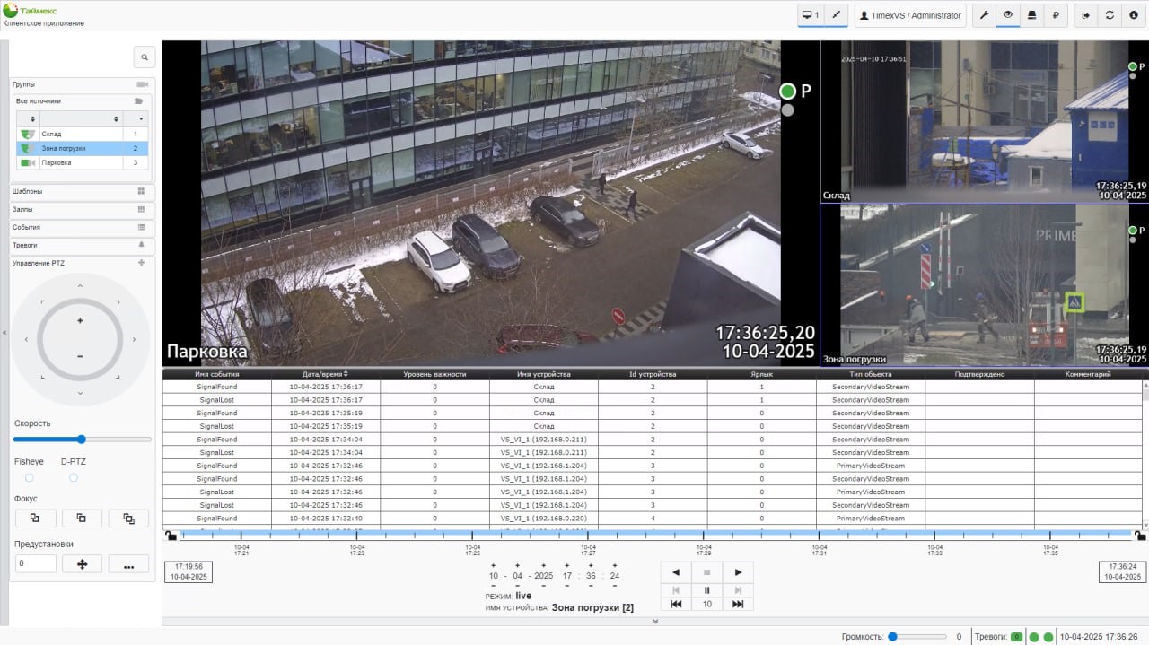 Программный модуль Timex VS предназначен для организации односерверной системы IP-видеонаблюдения. Timex VS – кроссплатформенное решение, с поддержкой ОС семейств Microsoft® Windows® и Astra® Linux. Timex VS позволяет как реализовать самостоятельную систему видеонаблюдения малого/среднего размера, построенную на базе сервера записи Timex VS NVR и собственных клиентов для просмотра и работы с видео АРМ Timex VS, так и использовать несколько таких независимых систем в качестве компонентов единого интегрированного решения платформы управления системой безопасности Timex.