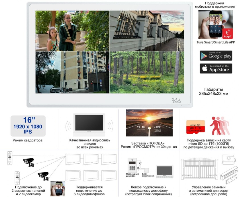 Для постоянных клиентов и партнеров цена WARTE-iDM16-01M MHD белый (ЛЕГЕНДА) видеодомофон с сенсорным 16" экраном (квадратор) поддержка IP/AHD/CVBS c записью по детекции движения и моб. приложением корректируется в личном кабинете.