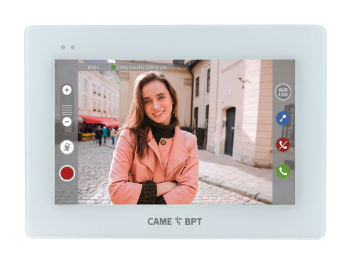 IP-видеодомофон марки BPT (Италия). Без трубки (hands-free) с сенсорным 5’’ дисплеем Локальное (12 Вольт) или POE питание Редактор интерфейса Цвет белый лёд