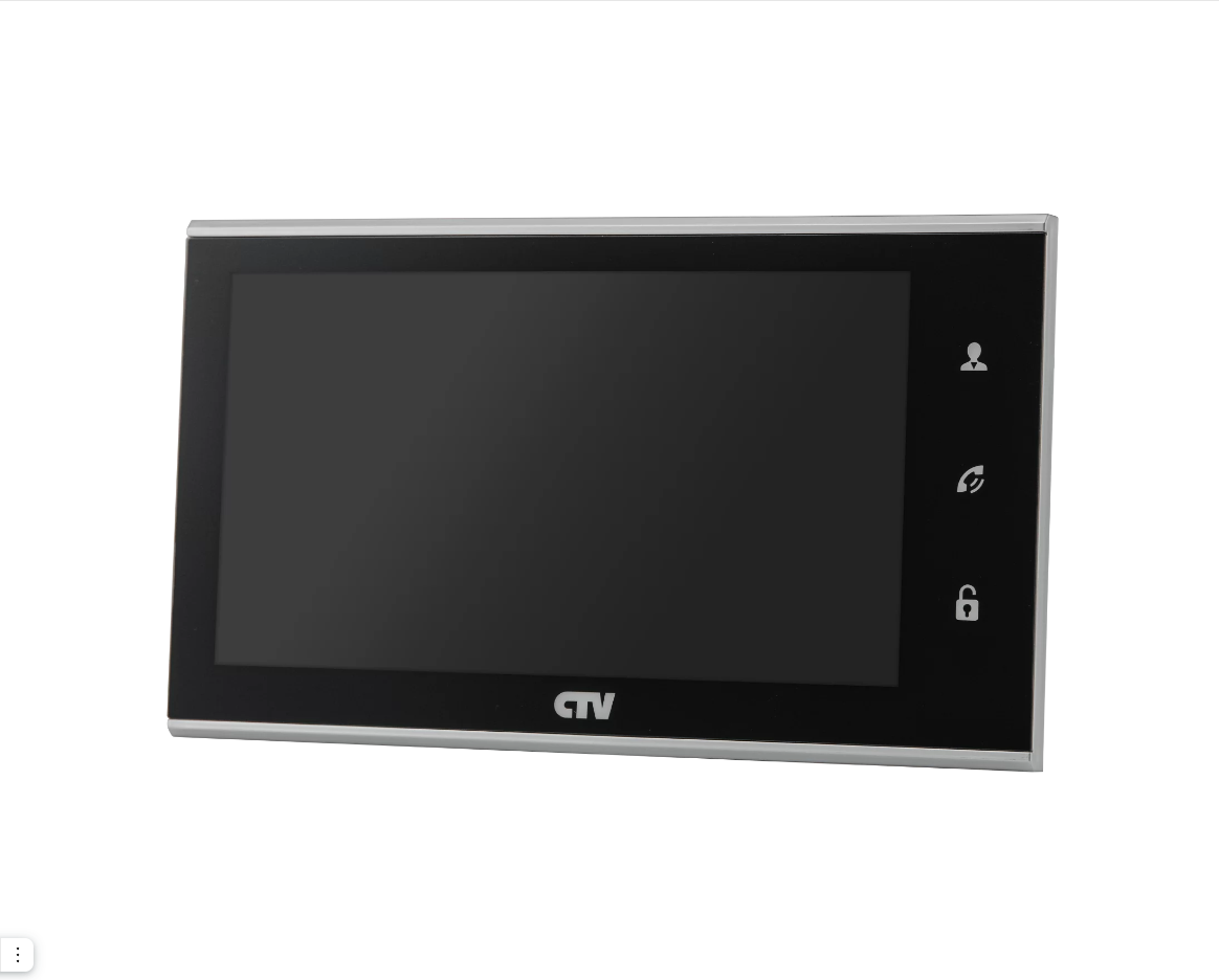 Функциональные особенности ВидеодомофонаЦветной монитор с IPS экраном 7", Hands free, накладное крепление Тонкий корпус со встроенным источником питания Стеклянная сенсорная панель управления Easy Buttons Функция автоответчика, голосовое сообщение об открытии двери Графическое меню управления параметрами Детектор движения Встроенная память на 190 фотографий Поддержка карт памяти microSD для записи видео/фото Возможность объединения до 4 мониторов в системе Возможность подключения до двух вызывных панелей Возможность подключения в систему до 2-х дополнительных охранных видеокамер Поддержка режима интеркома Режим ожидания с индикацией времени Дистанционное управление электозамком/электрозащёлкой 4-х проводное соединение монитора с вызывной панелью Цвет корпуса монитора: белый, чёрный Дизайн CTV-Tech Технические характеристики Параметры Значение Экран 7 ˝ TFT IPS LCD (16:9) Разрешение (ГхВ) 800x480 Стандарт видео PAL/NTSC Режим интеркома Полудуплекс Продолжительность беседы 120 секунд Сенсорные кнопки управления Да Внутренняя память Да, на 128 Мб (только фото) Поддержка карт SD microSD-card Class10, запись видео Ток в дежурном режиме Макс. 250 мА / 12В DC Ток в рабочем режиме Макс. 600 мА / 12В DC Напряжение питания АС 100-240 Вольт Рабочая температура -10...+60°С Установка Монтажная пластина Размеры (ШхВхГ) 192,5x112,8x19,8 мм Вес (нетто) 0,5 кг
