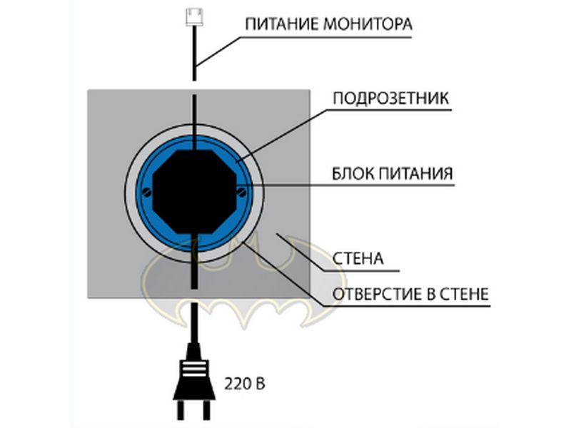 - Выносной адаптер питания с возможностью установки в стеновую монтажную коробку (подрозетник) Д60мм