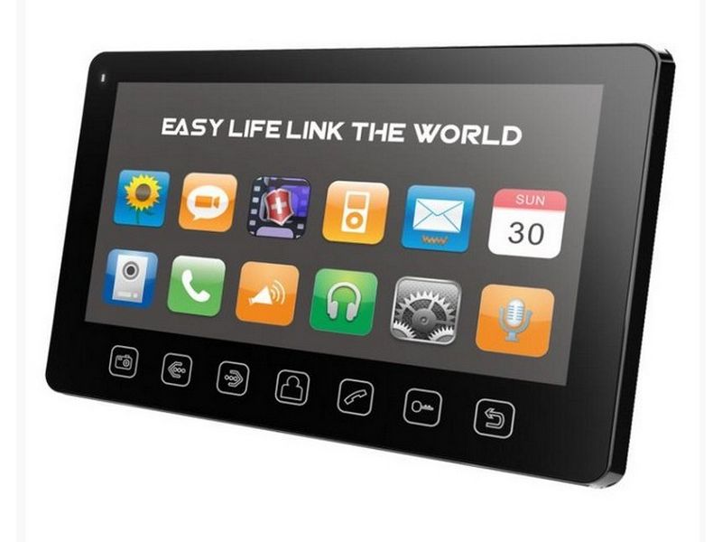 Экран TFT, цветной, 7 дюймов, 800x480 Сверх тонкий корпус 17мм Питание: пасивное PoE 185 х 127,5 х 17 мм 360 г