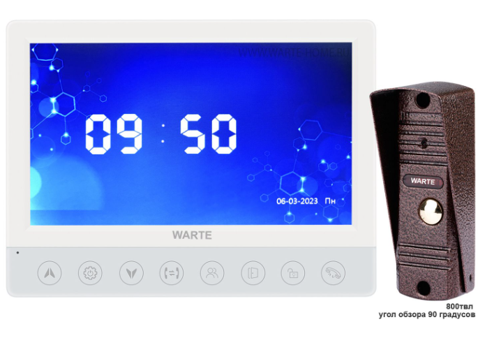 Для постоянных клиентов и партнеров цена WARTE-07-03 белый/медь PAL (КВАРТЕТ+АККОРД 90) комплект 7" видеодомофона с памятью с вызывной панелью корректируется в личном кабинете.