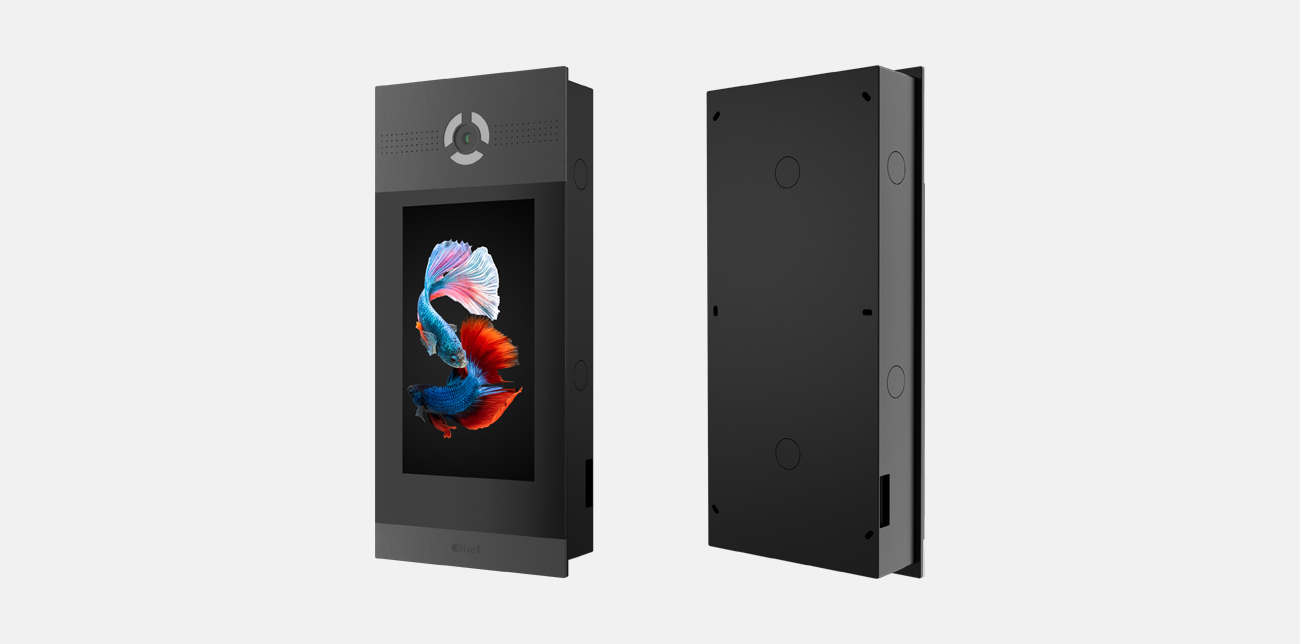 10-ти дюймовый TFT экран с подсветкой и подогревом позволяет выводить не только информацию о вызываемом абоненте, но и загружать его аватару, а при звонке посетителя, возможно показывать рекламу и сообщения консьержа. Экран отлично работает в температурном режиме от -40°С до +65 °С.Также на большом экране возможно дополнительно устанавливать виджет погоды и отображать информацию о локации дома.