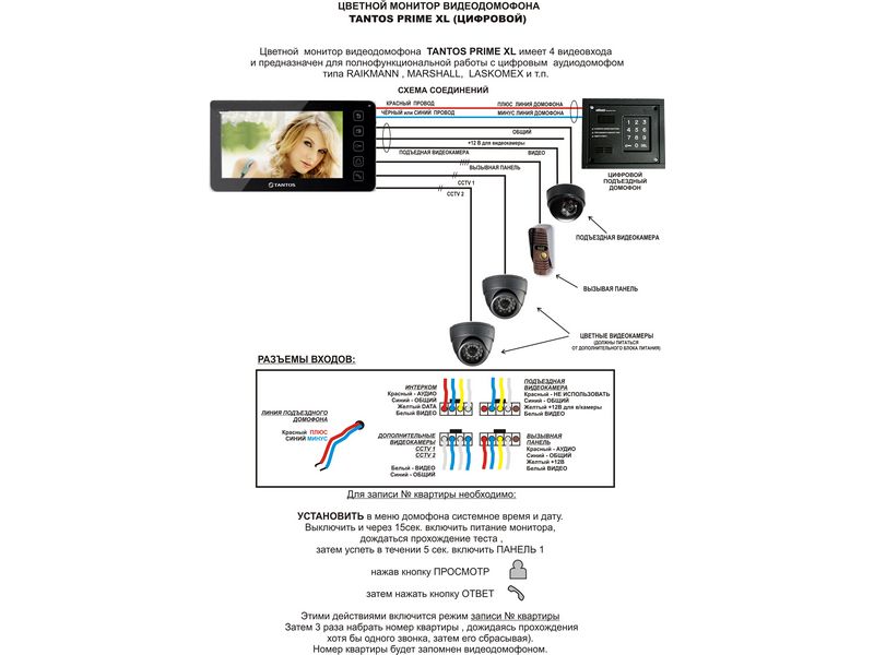 TANTOS PRIME XL (белый) Цветной видеодомофон
