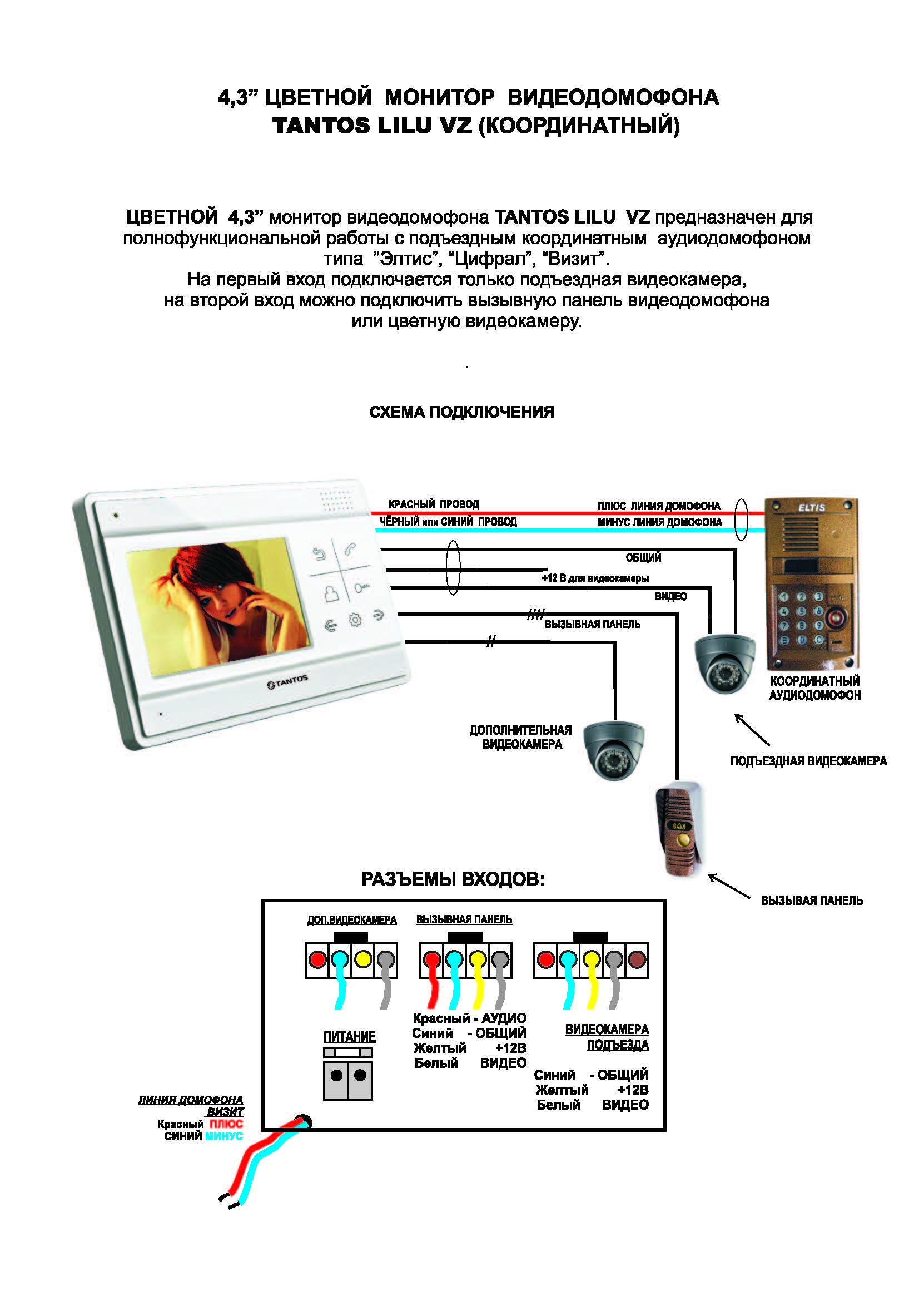 Если вы решили купить Tantos LILU VZ Цветной видеодомофон для квартиры, офиса, частного дома то вы можете сделать заказ в нашем интернет магазине по выгодной для вас цене. Так же вы можете ознакомиться с характеристиками, сделать расчет и скачать инструкцию на оборудование.