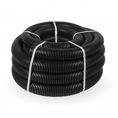 Труба гофрированная ПА негорючая (НГ) стойкая к ультрафиолету (УФ) чёрная с/з d63 мм (15м/360м уп/пал) Промрукав
