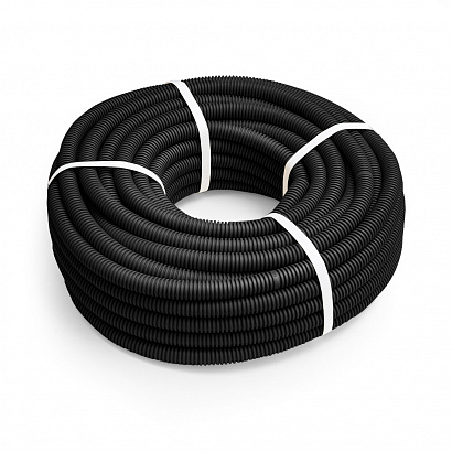 Труба гофрированная ПА безгалогенная (HF) стойкая к ультрафиолету чёрная с/з d25 мм (25м/2250м уп/пал) Промрукав