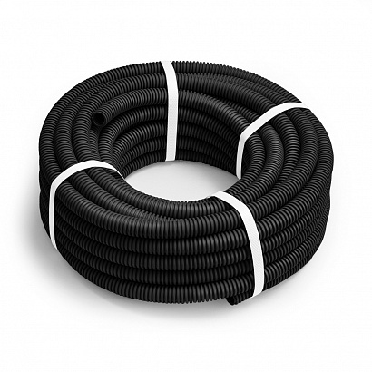 Труба гофрированная ПА негорючая (НГ) стойкая к ультрафиолету (УФ) чёрная с/з d20 мм (10м/2400м уп/пал) Промрукав