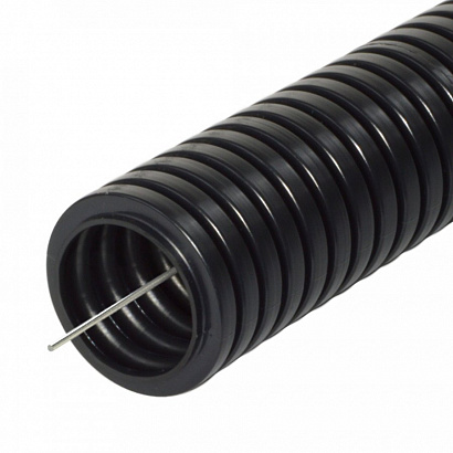 Труба гофрированная ПА негорючая (НГ) стойкая к ультрафиолету (УФ) чёрная с/з d20 мм (25м/2700м уп/пал) Промрукав
