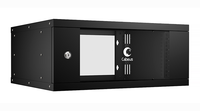 Cabeus WSC-05D-4U55/45-BK Шкаф телекоммуникационный настенный 19" 4U, серия LIGHT разборный, дверь стекло, цвет черный