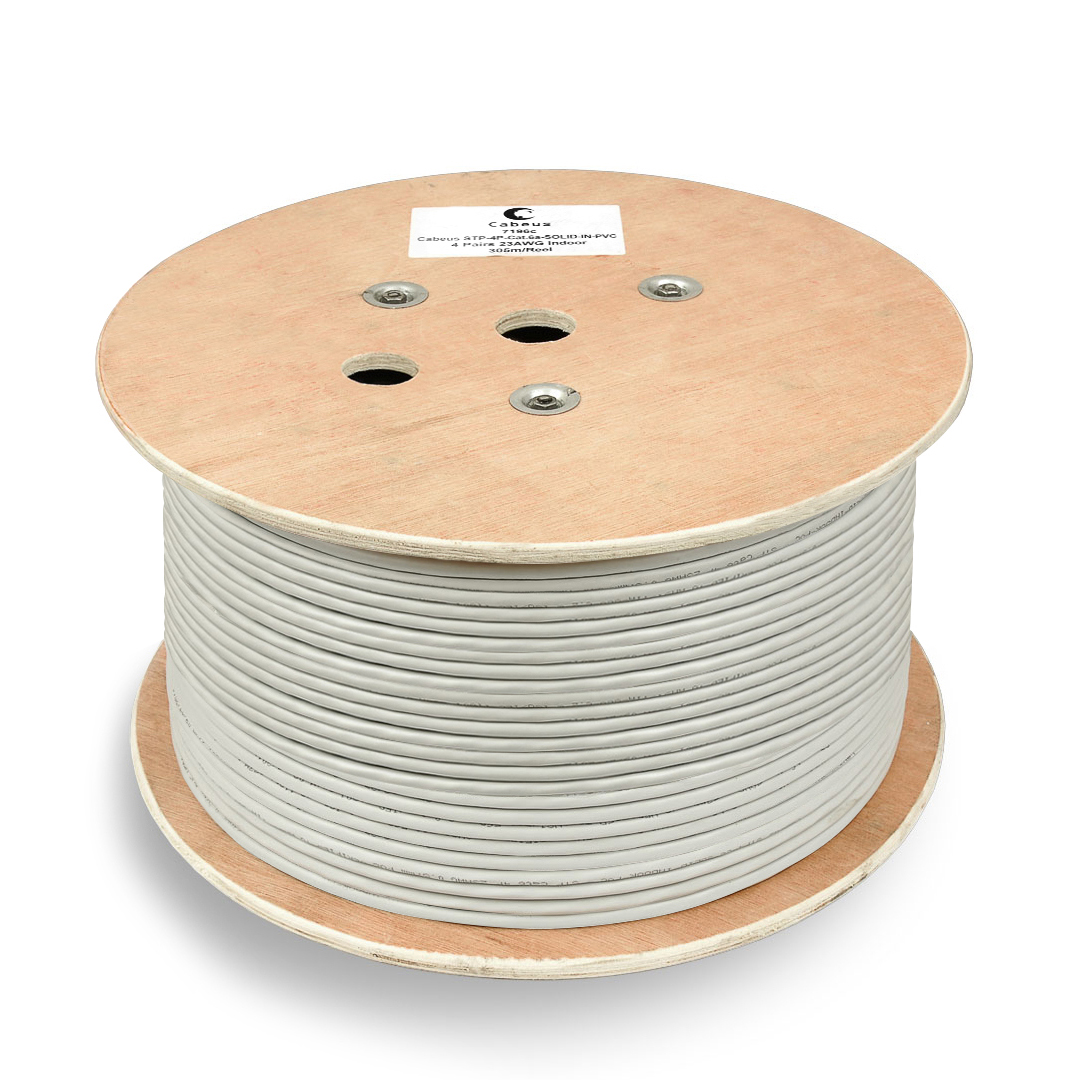 Cabeus FTP-4P-Cat.6-SOLID-GY Кабель витая пара экранированная FTP (F/UTP), категория 6, 4 пары (23 AWG), одножильный (305 м), PVC нг(А)-LS