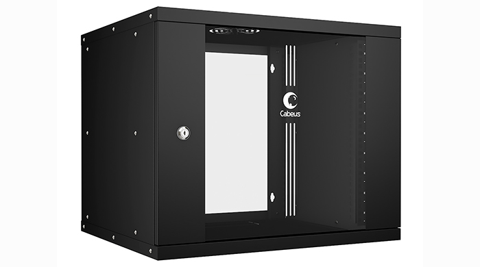 Cabeus WSC-05D-9U55/45-BK Шкаф телекоммуникационный настенный 19" 9U, серия LIGHT разборный, дверь стекло, цвет черный