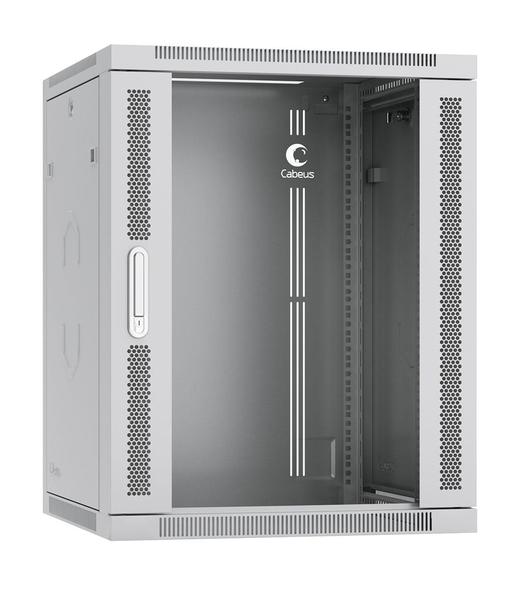 Cabeus SH-05F-15U60/35-R Шкаф телекоммуникационный настенный разобранный 19" 15U 600x350x769mm (ШхГхВ) дверь стекло, цвет серый (RAL 7035)