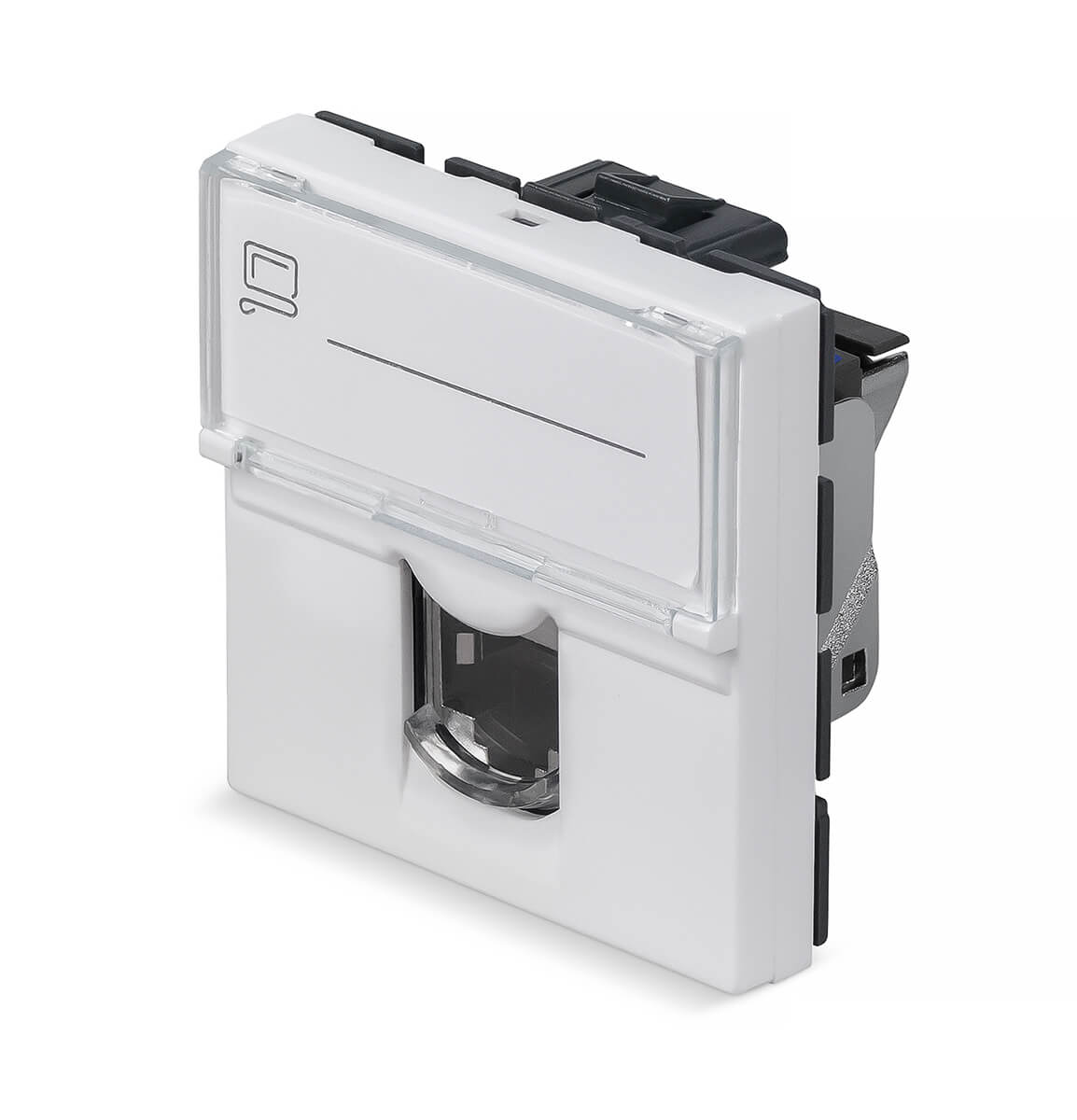 Cabeus KJ-RJ45-Cat.6-SH-180T-FP-L-45 Keystone Jack RJ-45(8P8C), 180 градусов, категория 6, экранированная, безинструментный монтаж, вставка Mosaic (арт.076566)
