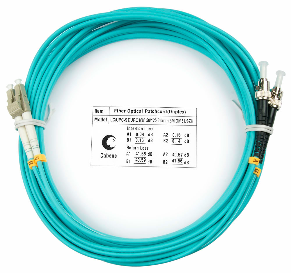 Cabeus FOP-50-LC-ST-10m Шнур оптический duplex LC-ST 50/125 mm OM3 10м LSZH