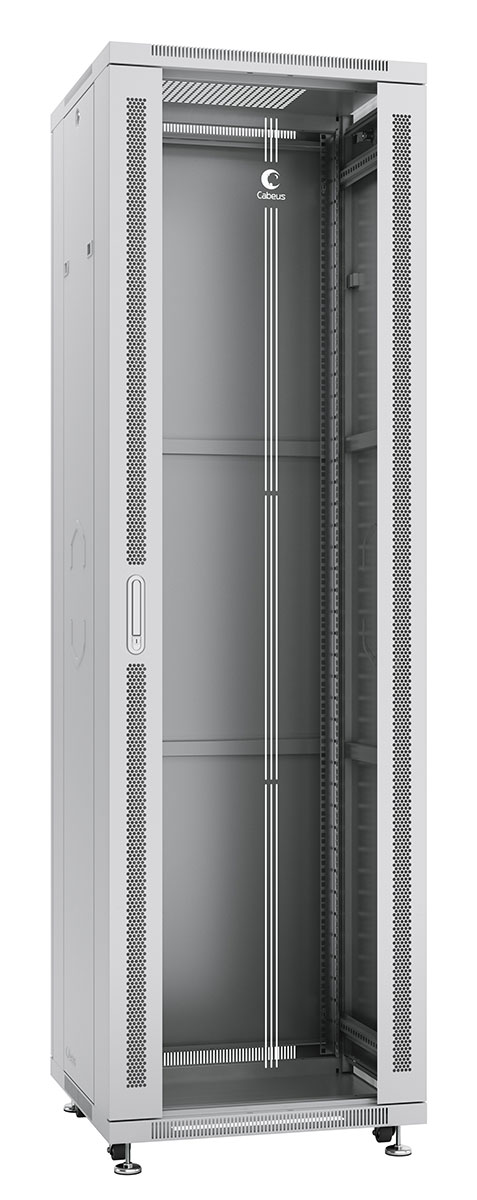 Cabeus SH-05C-42U60/80 Шкаф монтажный телекоммуникационный 19" напольный для распределительного и серверного оборудования 42U 600x800x2055mm (ШхГхВ) передняя стеклянная и задняя сплошная металлическая двери, ручка с замком, цвет серый (RAL 7035)