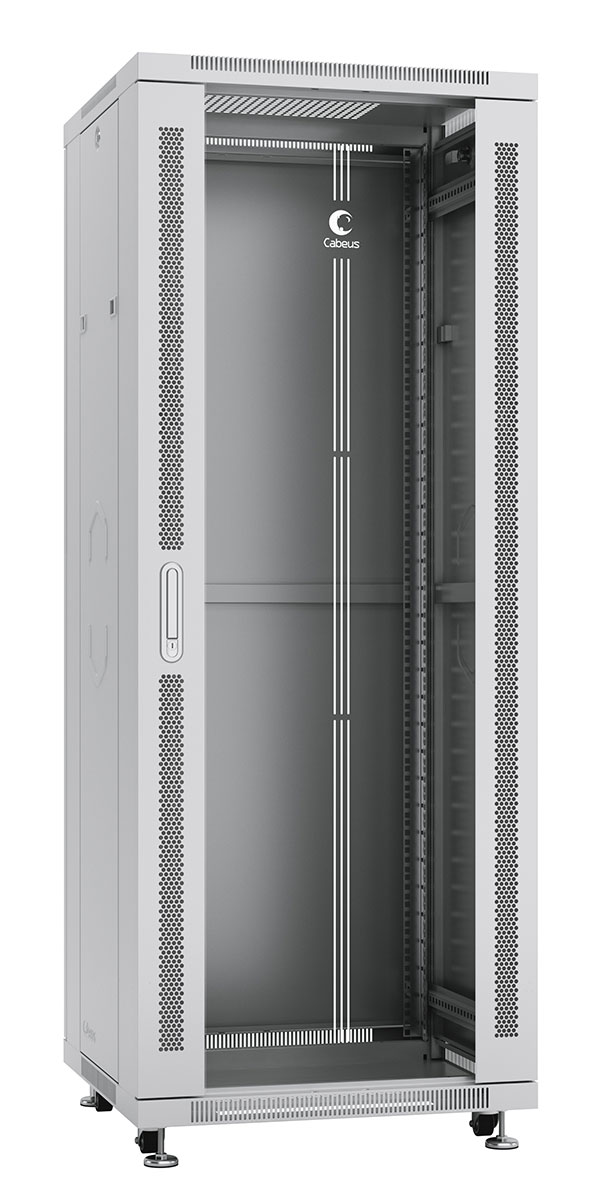 Cabeus SH-05C-32U60/100 Шкаф монтажный телекоммуникационный 19" напольный для распределительного и серверного оборудования 32U 600x1000x1610mm (ШхГхВ) передняя стеклянная и задняя сплошная металлическая двери, ручка с замком, цвет серый (RAL 7035)