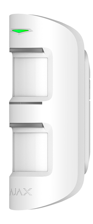 Уличный датчик движения с защитой от маскирования. Детектирует движение на расстоянии от 3 до 15 метров, но не реагирует на животных с ростом до 80 сантиметров. Рассчитан для работы при минусовых температурах, защищен от попадания пыли и брызг. Функция антимаскирования для определения заклеивания, закрашивания или покрытия прозрачным лаком одной или двух линз. Работает в составе охранной системы Ajax