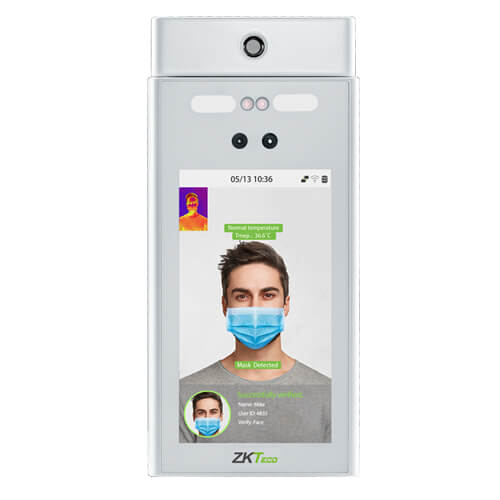 Биометрический терминал с распознаванием лиц оснащен тепловизорной камерой, отображающей изображение на экране и специализированным процессором ZKTeco для распознавания лиц и новейшей технологии компьютерного зрения. Технология бесконтактного распознавания и новые функции обнаружения повышенной температуры, и определение наличия маски - все это особенно актуально в нынешней ситуации распространения вирусных инфекций. Терминал может помочь в мониторинге вирусных заболеваний. Терминалы позволяют быстро и точно измерять температуру тела, что чрезвычайно важно при борьбе с распространением заболеваний, особенно в больницах, фабриках, школах, коммерческих зданиях, вокзалах и других общественных местах.