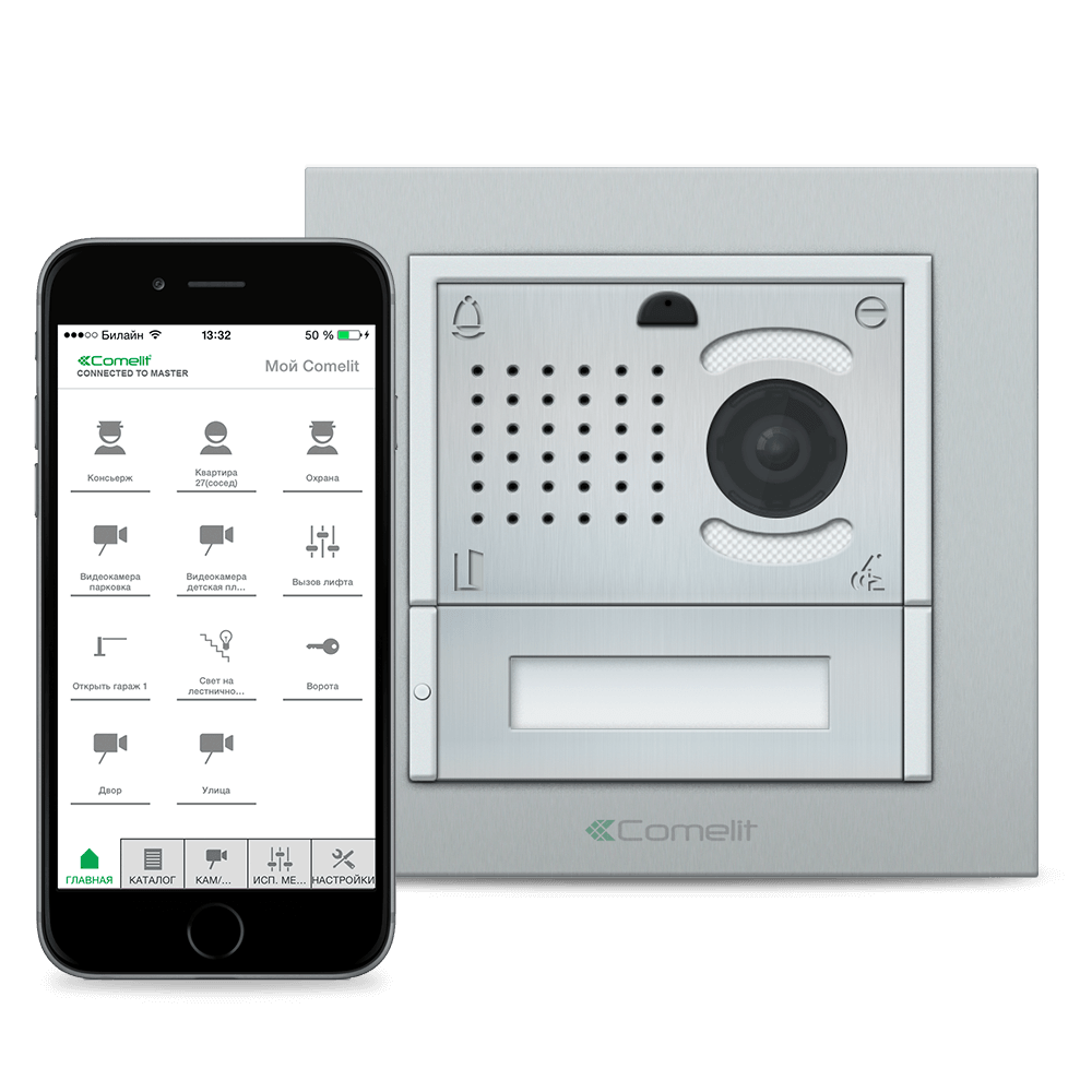 Готовый комплект IP-домофона Comelit с вызывной панелью iKall Metal и шлюзом удалённого доступа Master. Позволяет отвечать на видеодомофон через мобильное приложение ComelitViP Remote для iOS/Android, как из дома, так и удалённо через 3G/4G соединение. Может подключаться в существующую локальную сеть, требуется подключение к интернет. Мобильное приложение бесплатное, найти его можно в AppStore и Google Play.