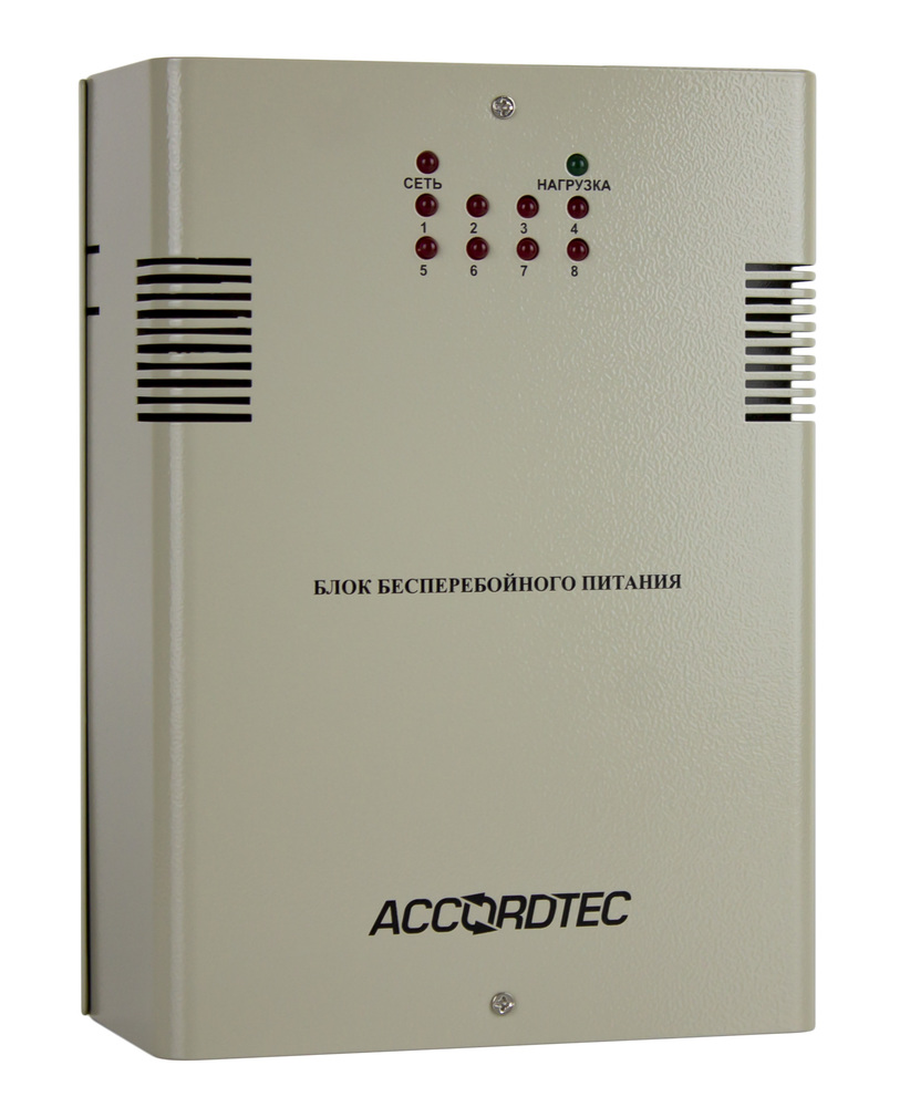 Блок бесперебойного питания: Есть Регулировка выходного напряжения: от 11.9В до 14.7В Номинальный ток нагрузки: 8 x 0.75A Материал корпуса: Металл