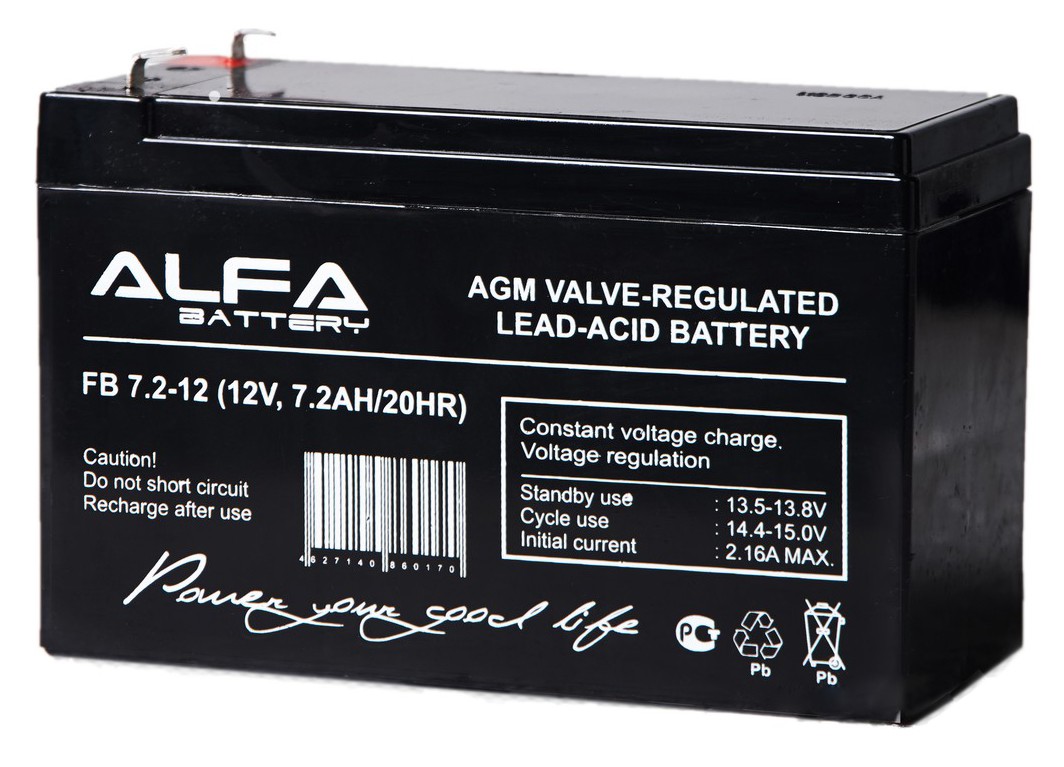 Аккумулятор Alfa Battery FB 7,2-12 является герметизированным, необслуживаемым (выполнен по AGM технологии). Обладает низким уровнем саморазряда. Может эксплуатироваться как в буферном, так и в циклическом режимах. Безопасную работоспособность в любом положении обеспечивает герметизированность конструкции. АКБ этой серии разработаны для обеспечения резервным питанием систем охраны и безопасности. Поставляется как замена АКБ ALARM FORCE FB 7,2-12.