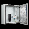 Климатический шкаф АШМ-4А-УМ. Степень защиты IP 66 с механическим гигростатом служащим для защиты оборудования в условиях повышенной влажности (осадки, пар или близость к любым водоемам) Габариты (внешние): 600х600х210 (ШхВхГ) Габариты (внутренние): 570х570х150 (ШхВхГ) Предназначен для использования в любых климатических условиях на улице ( -55°С +50°С) Комплектация: утеплитель из порилекса НПЭ, замок 2 шт, ключ 1 шт, монтажная плата 1шт, люк под геромовводы 1 шт, гермовводы 2шт, розетка 1 шт, автоматический выключатель 1шт, гигростат NT 74-F (механический) 1шт, нагреватель мощностью в 150 Вт 1шт. Вес: 22 кг Цвет ral 7035 (серый)