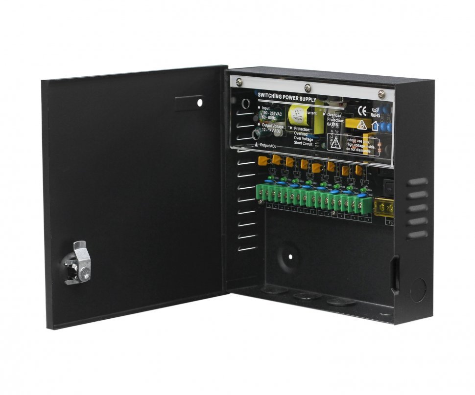 Б.п. 12 VDC/ 5 A, 8 каналов, металлический корпус 205х200х50 мм, черный