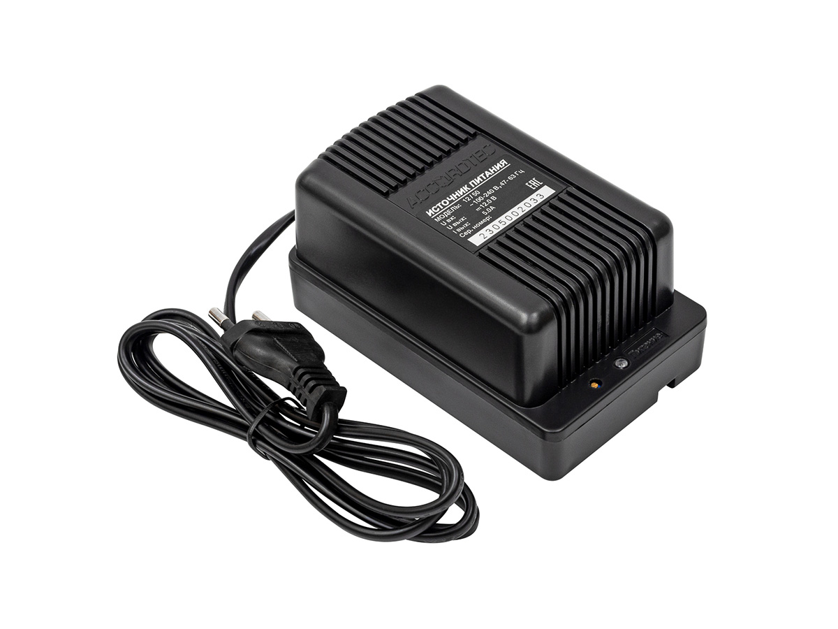 Источник стабилизированного питания. Uвх 110-250 В AC, Uвых DC 12,6 В (регулируется 11 В – 13,5 В ± 5%), Iвых = 5A (ном.). Рабочая температура : -15°C ~ +50°C. Габаритные размеры: 127 х 76 х 60 мм. Масса брутто 348 г. Цвет корпуса: черный, белый.