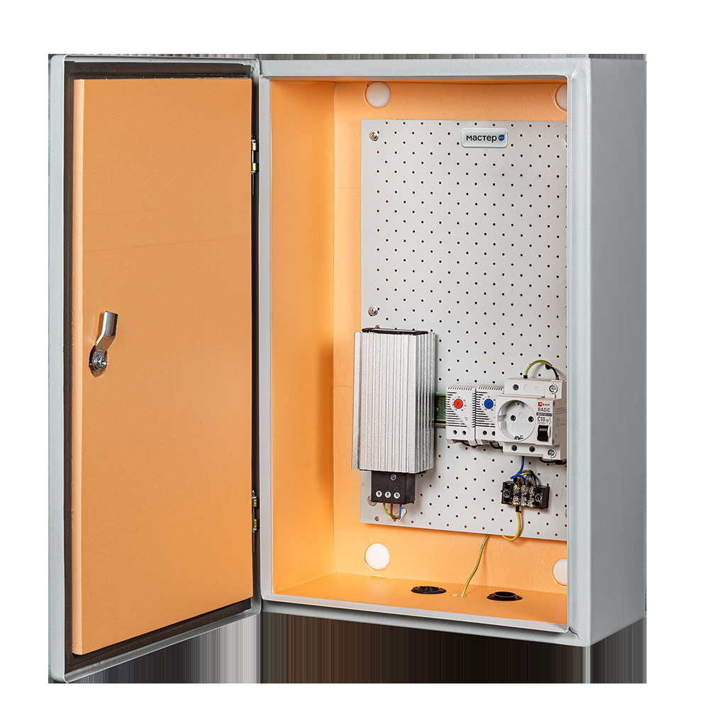 Климатический навесной шкаф Mastermann-15УТ (Ver. 2.0) Габариты (внешние): 800х1000х300 (ШхВхГ) Габариты (внутренние): 777х977х270 (ШхВхГ) Предназначен для использования в любых климатических условиях на улице (-55°С +50°С) Комплектация: утеплитель из порилекса, замок 2 шт, ключ 1 шт, монтажная плата 1шт, гермовводы 5 шт (MG-25), розетка 1 шт, автоматический выключатель, 6А 1шт, клемма для подключения оборудования 2 шт, клемма заземления 1 шт, термореле 1шт, нагреватель мощностью 150 Вт 2 шт. Вес: 45,8 кг. IP 66. Цвет ral 7035 (серый)