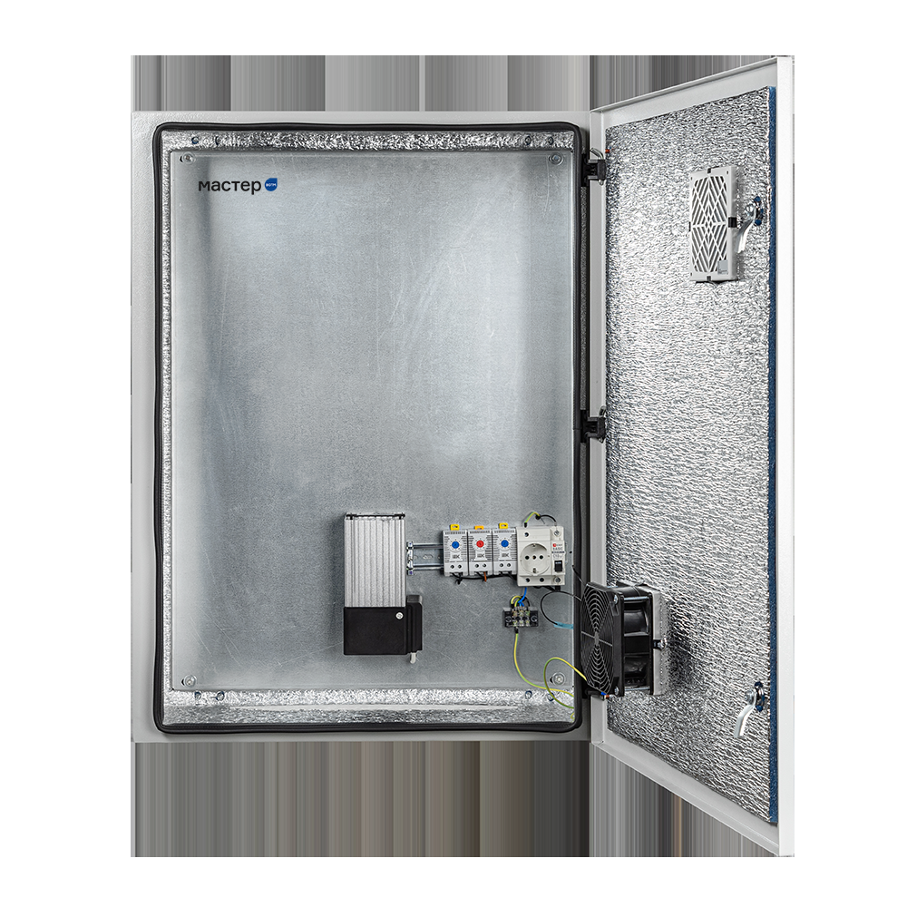 Климатический навесной шкаф Mastermann-15УТ (Ver. 2.0) Габариты (внешние): 800х1000х300 (ШхВхГ) Габариты (внутренние): 777х977х270 (ШхВхГ) Предназначен для использования в любых климатических условиях на улице (-55°С +50°С) Комплектация: утеплитель из порилекса, замок 2 шт, ключ 1 шт, монтажная плата 1шт, гермовводы 5 шт (MG-25), розетка 1 шт, автоматический выключатель, 6А 1шт, клемма для подключения оборудования 2 шт, клемма заземления 1 шт, термореле 1шт, нагреватель мощностью 150 Вт 2 шт. Вес: 45,8 кг. IP 66. Цвет ral 7035 (серый)