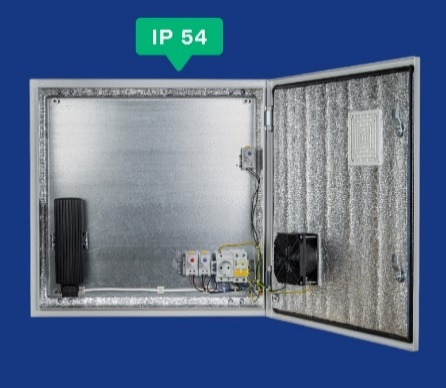 Климатический навесной шкаф Mastermann-4УТПВ-А+ (Ver. 2.0) IP 54 с вентиляторными решетками, вентилятором (активная вентиляция) и защитным реле от "холодного пуска". Габариты (внешние): 600х600х250 (ШхВхГ) Габариты (внутренние): 577х577х220 (ШхВхГ) Предназначен для использования в любых климатических условиях на улице (-55°С +50°С) Комплектация: утеплитель из порилекса НПЭ, замок 2 шт, ключ 1 шт, монтажная плата 1шт, люк под геромовводы 1 шт, гермовводы 5 шт, розетка 1 шт, автоматический выключатель 1шт, термореле 1 шт, реле предстарта 1 шт, люк под геромовводы 1 шт, нагреватель мощностью в 250 Вт 1шт, вентилятор NTL FF 152 1 шт, вентиляционные панели 2шт. Вес: 23 кг. Цвет ral 7035 (серый)