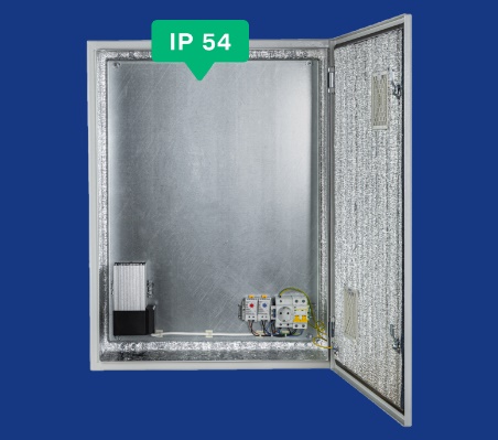 Климатический навесной шкаф Mastermann-5УТПВ-П+ (Ver. 2.0) IP 54 с вентиляторными решетками (пассивная вентиляция) и защитным реле от "холодного пуска". Габариты (внешние): 600х800х300 (ШхВхГ) Габариты (внутренние): 577х777х270 (ШхВхГ) Предназначен для использования в любых климатических условиях на улице (-55°С +50°С) Комплектация: утеплитель из порилекса НПЭ, замок 2 шт, ключ 1 шт, монтажная плата 1шт, люк под геромовводы 1 шт, гермовводы 5 шт, розетка 1 шт, автоматический выключатель 1шт, термореле 1 шт, реле предстарта 1 шт, нагреватель мощностью в 250 Вт 1шт, вентиляционные панели 2шт. Вес: 32 кг. Цвет ral 7035 (серый)