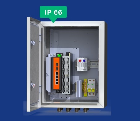 Коммутационный термошкаф Mastermann 6 УТП 4К IP 66 с защитным реле от "холодного пуска". Габариты (внешние): 300х400х210 мм (ШхВхГ) Предназначен для использования в любых климатических условиях на улице (-60°С +50°С) Степень пылевлагозащиты IP66. Корпус стальной 1,5 мм. Настенное крепление. Входное напряжение 220В Комплектация: Двухполюсный защитный автомат 6А - 1 шт.Обогреватель 50Вт - 1 шт. Сдвоенный термостат - 1 шт. Блок питания 150Вт -1 шт. Промышленный неуправляемый коммутатор 4*PoE 802.3 af/at (бюджет 140 Вт), 2*SFP - 1 шт. Оптический кросс 4 порта SC/SM - 1 шт. Гермовводы 4*PG9, 4*PG13,5 -1 комплект. Цвет ral 7035 (серый)