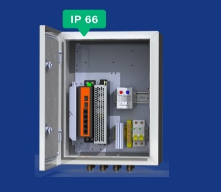 Коммутационный термошкаф Mastermann 6 УТП 4КУ IP 66 с защитным реле от "холодного пуска". Габариты (внешние): 300х400х210 мм (ШхВхГ) Предназначен для использования в любых климатических условиях на улице (-60°С +50°С) Степень пылевлагозащиты IP66. Корпус стальной 1,5 мм. Настенное крепление. Входное напряжение 220В Комплектация: Двухполюсный защитный автомат 6А - 1 шт.Обогреватель 50Вт - 1 шт. Сдвоенный термостат - 1 шт. Блок питания 150Вт -1 шт. Промышленный управляемый коммутатор 4*PoE 802.3 af/at (бюджет 140 Вт), 2*SFP, 1*console port - 1 шт. Оптический кросс 4 порта SC/SM- 1 шт. Гермовводы 4*PG9, 4*PG13,5 -1 комплект. Цвет ral 7035 (серый)