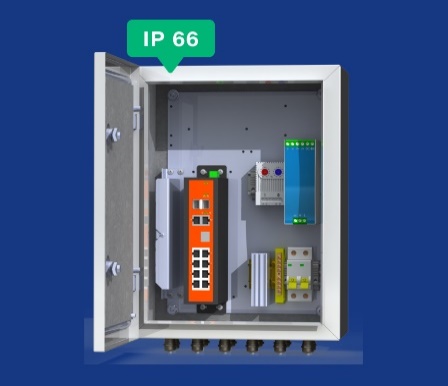 Коммутационный термошкаф Mastermann 6 УТП 8К IP 66 с защитным реле от "холодного пуска". Габариты (внешние): 300х400х210 мм (ШхВхГ) Предназначен для использования в любых климатических условиях на улице (-60°С +50°С) Степень пылевлагозащиты IP66. Корпус стальной 1,5 мм. Настенное крепление. Входное напряжение 220В Комплектация: Двухполюсный защитный автомат 6А - 1 шт.Обогреватель 50Вт - 1 шт. Сдвоенный термостат - 1 шт. Блок питания 240Вт -1 шт. Промышленный неуправляемый коммутатор 8*PoE 802.3 af/at (бюджет 230 Вт), 2*combo SFP - 1 шт. Оптический кросс 4 порта SC/SM - 1 шт. Гермовводы 8*PG9, 4*PG13,5 -1 комплект. Цвет ral 7035 (серый)
