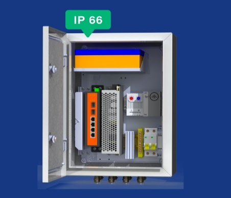 Коммутационный термошкаф Mastermann 6 УТП 4К ГЗ AКБ 2А IP 66 с защитным реле от "холодного пуска". Габариты (внешние): 300х400х210 мм (ШхВхГ) Предназначен для использования в любых климатических условиях на улице (-60°С +50°С) Степень пылевлагозащиты IP66. Корпус стальной 1,5 мм. Настенное крепление. Входное напряжение 220В Комплектация: Двухполюсный защитный автомат 6А - 1 шт. Обогреватель 50Вт - 1 шт. Сдвоенный термостат - 1 шт. Блок бесперебойного питания 155Вт -1 шт. Аккумулятор 12В, 2,2А/ч - 4 шт. Промышленный неуправляемый коммутатор 4*PoE 802.3 af/at (бюджет 140 Вт), 2*SFP - 1 шт. Оптический кросс 4 порта SC/SM - 1 шт. Гермовводы 4*PG9, 4*PG13,5 -1 комплект. Устройство грозозащиты линии 220В -1 шт. Устройство грозозащиты линий PoE -1 шт. Цвет ral 7035 (серый)