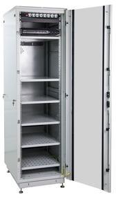 Коммутационный 19” шкаф высотой 42U; Место под 20 шт. АКБ емкостью 40 – 80 Ач (в комплект не входят); Встроенный