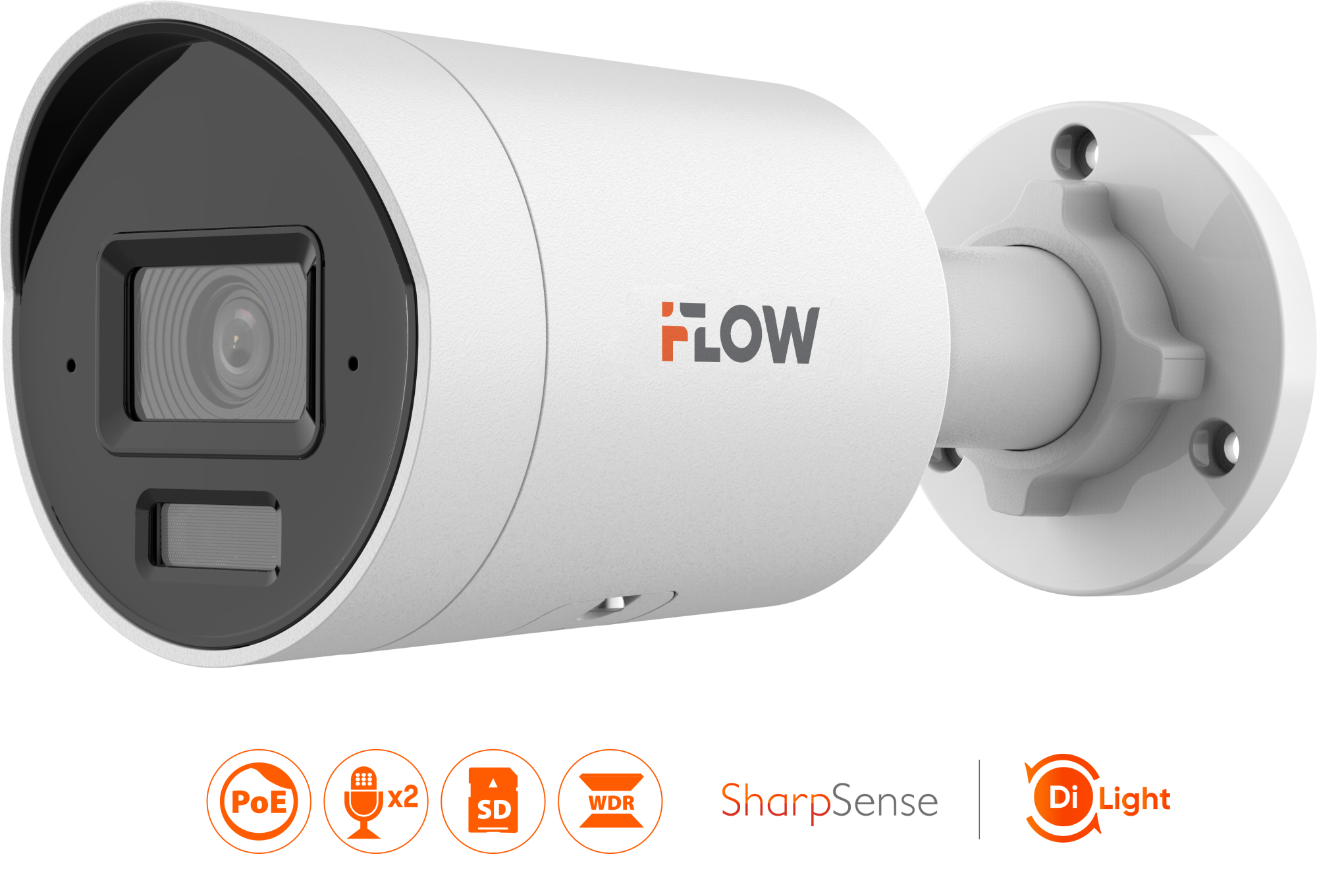 2Мп уличная IP-камера i-Flow с гибридной Smart-подсветкой и встроенным микрофоном. Размер матрицы 1/2.9'' Progressive Scan CMOS матрица; объектив 4мм
