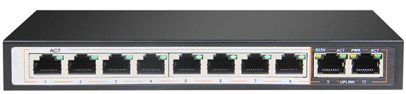 10 портовый РoЕ коммутатор неуправляемый с функцией watchdog 8 портов x10/100 Base-TX (Питание PoE), 2 порта x10/100 Base-TX (Uplink); IEEE802.3af/IEEE802.3at; Коммутационная способность: 2 Гбит/с. Режимы: VLAN, CCTV, AI-POE(watchdog), QoS Расстояние до потребителя PoE до 250м; Бюджет РoЕ: 96 Вт; Таблица MAC-адресов: 2K; Питание :DC 48~57В; Размеры: 184мм×794мм×27мм; Блок питания в комплекте.