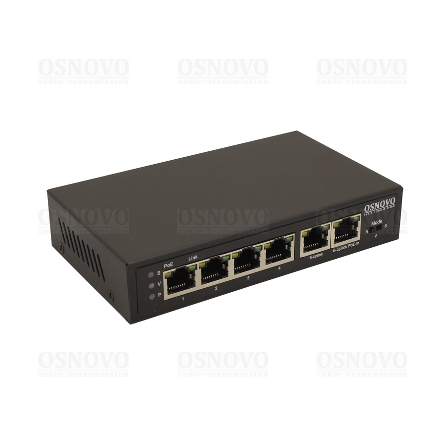 PoE Коммутатор/ удлинитель Fast Ethernet на 6 портов с питанием по PoE. Порты: 4 х FE (10/100 Base-T) с поддержкой PoE, 1 x FE (10/100 Base-T) Uplink с поддержкой питания по PoE (до 90W), 1 x FE (10/100 Base-T) Uplink. Соответствует стандартам PoE IEEE 802.3af/at. Автоматическое определение PoE устройств. Мощность PoE на порт - до 30W. Суммарная мощность PoE - до 87W. Поддержка режима CCTV: Увеличение расстояния передачи данных до 250м, изоляция портов. Встроенная грозозащита - 3kV. Возможно крепление на стену. Питание: По порту FE (10/100 Base-T) Uplink. Размеры (ШхВхГ): 140 x 28 x 80 мм. Рабочая температура: -10...+55 гр. С