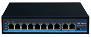 10 портовый РoЕ коммутатор неуправляемый 8 портов x10/100 Base-TX (Питание PoE), 2 порта x10/100 Base-TX (Uplink); IEEE802.3af/IEEE802.3at; Расстояние до потребителя PoE до 250м; Бюджет РoЕ: 120 Вт; Таблица MAC-адресов: 2K; Питание :DC 48~57В; Размеры: 209мм×96мм×27мм; Блок питания в комплекте.