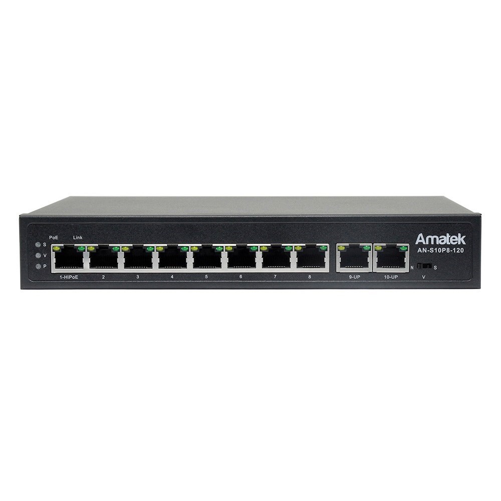 Amatek AN-S10P8-120 - 10-портовый 100 Мбит/с коммутатор с HiPoE/PoE+ до 120Вт