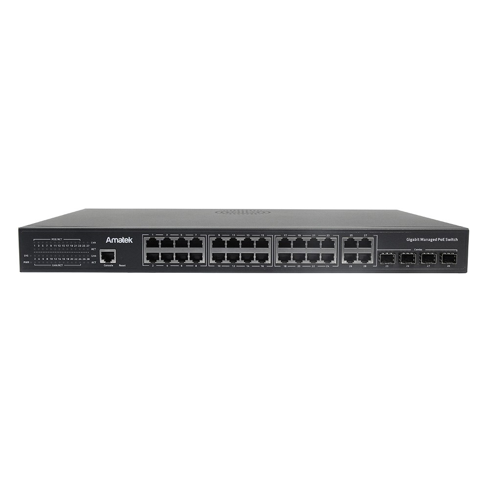 28-портовый управляемый 100/1000 Мбит/с настольный/монтируемый в стойку коммутатор с PoE до 400Вт. Особенности: 24 порта 100/1000 Мбит/с с поддержкой PoE +, автосогласованием и авто-MDI/MDIX (разъёмы RJ45) 4 порта Combo (100/1000Base-T/SFP) 10/100/1000 Мбит/с, автосогласованием авто-MDI/MDIX (разъёмы RJ45) Управление: Поддержка VLAN : IEEE 802.1q (4094 VLAN ID. 256 групп VLAN ). 802.1ad Q-in-Q tunneling по порту. Агрегация (объединение) каналов IEEE 802.3ad LACP: до 8 групп, каждая содержит до 8 портов. Поддержка протоколов STP: IEEE 802.1d ( STP ), IEEE 802.1w ( RSTP ), IEEE 802.1s ( MSTP ). Возможна изоляция порта, BPDU фильтрация / защита, TC/Root защита. Зеркалирование портов Качество обслуживания ( QoS ): 8 очередей вывода на каждый порт, ограничение скорости по порту / потоку, планирование очередей (WRR), классификации на основе портов (MAC, 802.1p CoS, DSCP) IGMP Snooping v2/v3, MLD (v1/v2) snooping - управление многоадресной раздачей потоков на 256 групп, использующийся в IPv6 Контроль пропускной способности (Bandwidth Control) Управление полнодуплексным потоком IEEE 802.3x. DHCP сервер определения IP адресов в сети Статистика обработки пакетов по портам Управление и обслуживание: WEB-интерфейс, SNMP(v1/v2c/v3), Telnet, консольный порт Поддержка LLDP protocol Обновление прошивки TFTP или через WEB-интерфейс Импорт/экспорт файла конфигурации настроек коммутатора Безопасность: Списки контроля доступа (ACL) для ограничение доступа на основе MAC-адреса источника и назначения, IP-адреса. IP-MAC port binding - контроль подключения устройств в сеть на основе сочетания их IP и MAC-адресов MAC filtering - фильтрация по MAC адресам для разграничения доступа к сети Static MAC address - возможность «привязать» конкретный MAC адрес к выбранному порту DHCP Snooping и DHCP Option82 - предотвращает несанкционированные (мошеннические) действия по DHCP сервису Различные настройки безопасности BPDU Функции защиты от DoS-атак Инспекция ARP - предназначена для предотвращения ARP spoofing/poisoning атак IP Source Guard - ограничение трафика через интерфейс коммутатора Power over Ethernet ( PoE ): 24 порта PoE +, позволяющие передавать питание и данные по одному кабелю Поддержка потребляемой мощности до 30 Вт для каждого PoE -порта Перераспределение мощности между портами в зависимости от потребления нагрузки Общая потребляемая мощность 400 Вт для всех PoE -портов Поддержка PoE -устройств на базе стандартов IEEE 802.3 at/af WatchDog – функция контроля зависания, подключенный к коммутатору устройств с последующим их перезапуском (перезагрузкой). WatchDog работает постоянно. Включение и настройка параметров WatchDog производится в меню коммутатора. Индивидуальная настройка для каждого порта коммутатора. Управление расписанием подачи питания POE, отображение мощности и тока в меню коммутатора Коммуникации Гигабитные 1000Base-T порты Ethernet со слотами SFP обеспечивают высокоскоростную передачу данных, обеспечивающими дополнительные возможности для расширения сети или подключения устройств записи на большое количество камер 4 порта Combo (RJ45/SFP) позволяет соединять коммутатор по медным или оптическим линиям передачи данных. Слоты SFP позволяет устанавливать SPF модули: 1000Base-SX: 62.5/50мкм многомодовое волокно (MMF) от 2 до 550 метров. 1000Base-LX: 62.5/50мкм многомодовое волокно (MMF) от 2 до 550 метров или 10мкм одномодовое волокно (SMF) от 2 до 5000 метров. 1000Base-EX: одномодовое волокно (SMF) до 40 км, (1310 нм). 1000Base-ZX: одномодовое волокно (SMF) до 70 км, (1550 нм) 1 консольный порт (RJ45) Для подключения по оптоволоконному кабелю необходим SFP модуль (в комплект не входит). Коммутация: Коммутационная спо