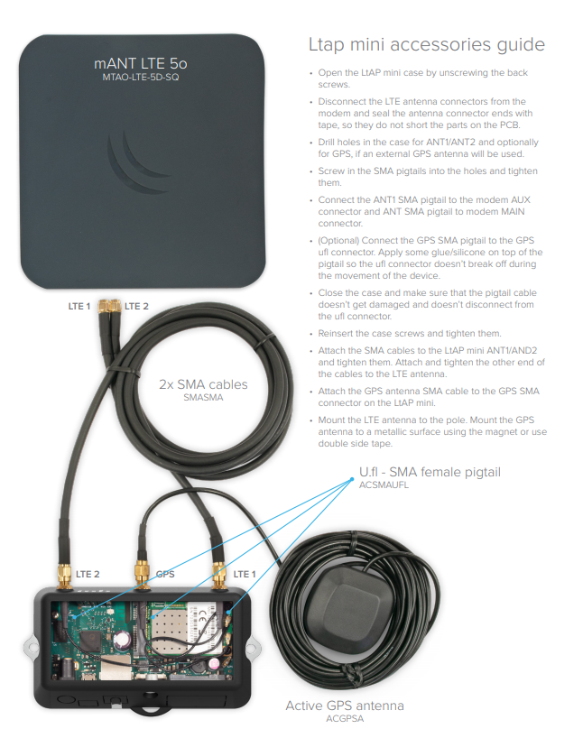 Доступна в двух версиях: модель LtAP mini LTE kit оснащена встроенным сотовым модемом с поддержкой 2G, 3G и 4G (LTE); LtAP mini поставляется без модема, что позволяет использовать собственный.